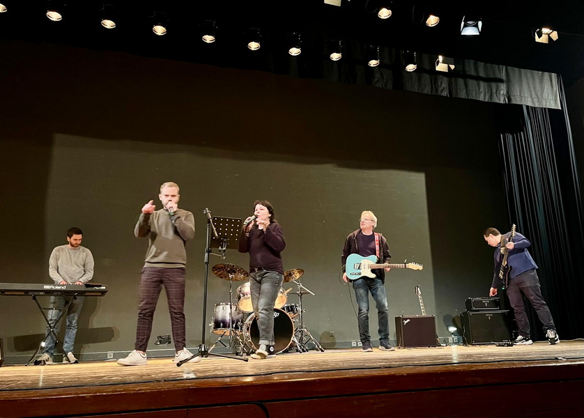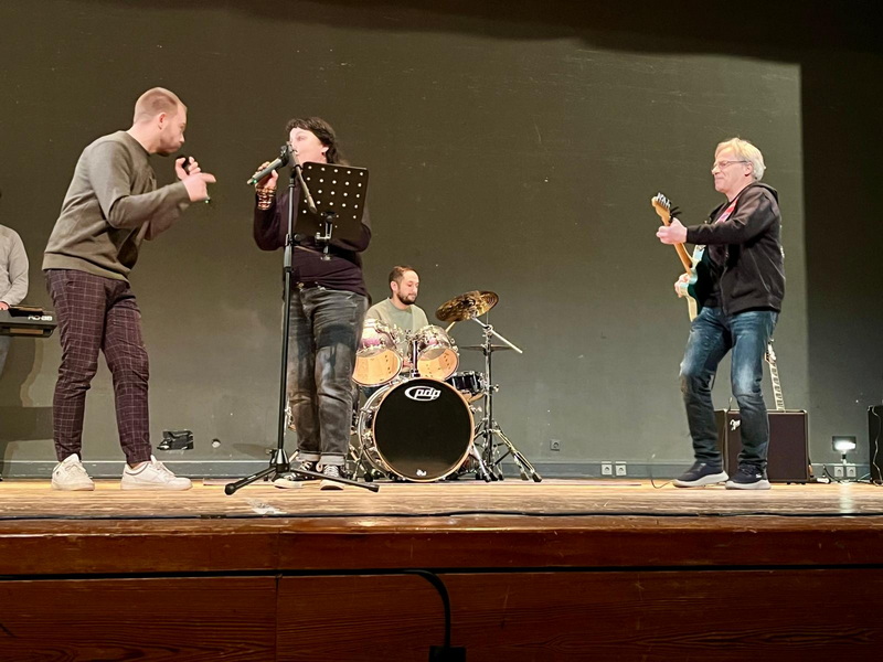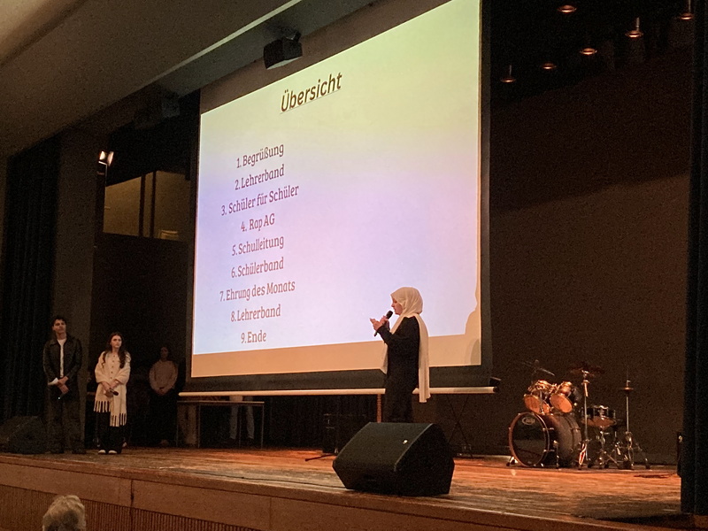 Zum Abschluss gab es mit der Lehrerband einen Gastauftritt des Leiters der Rap-AG: Patrick Sawadzki sang zusammen mit Sängerin Anja ‚Fairytale gone bad‘ von Sunrise Avenue. Mit viel Applaus und einem richtig starken Gemeinschaftsgefühl endete die Schülervollversammlung.